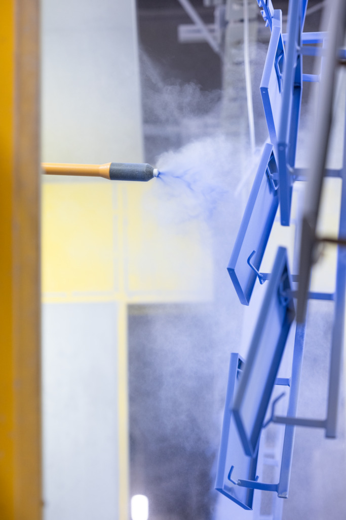 Für die gewünschte Robustheit und das glatte, glänzende Erscheinungsbild der Oberflächen setzt SCHMITZ medical bei allen Farbtönen auf Pulverbeschichtungen – mit einem weiteren wichtigen Zusatznutzen: „Unser Mobiliar soll nicht nur optisch gut aussehen, sondern auch die Verbreitung von Keimen im sensiblen medizinischen Umfeld reduzieren“, so Iven Greßner. „Was lag da näher, als eine antimikrobiell wirksame Pulverbeschichtungslösung speziell für die Kontaktflächen unserer Produkte einzusetzen?“ Brillux Industrielack mit Sitz in Unna realisiert alle Nuancen des Farbkonzepts mit dem Steriface-Pulver EP/PE 5680 für SCHMITZ medical. Dieser Pulverlack auf Polyester- und Epoxidharzbasis wurde als funktionelle und dekorative Beschichtung mit höchster Desinfektionsmittelbeständigkeit und leichter Reinigungsfähigkeit für Anwendungen im Medizinbereich entwickelt und zertifiziert. Für die antimikrobielle Wirkung sind fest in die Pulvermatrix eingebundene Silberionen verantwortlich. Sie hemmen dauerhaft die Vermehrung und Untergrundanhaftung von Bakterien und Pilzen: Selbst nach 10.000 Reinigungszyklen mit Putz- und Desinfektionsmitteln – das entspricht rund 14 Jahren – verlieren sie nichts von ihrer antimikrobiellen Wirkung. „Das Steriface-Pulver hat die technischen und ästhetischen Qualitäten, die all unsere Anforderungen erfüllen“, so Iven Greßner. „Ebenso entscheidend war für uns der Servicegedanke, den Brillux Industrielack lebt – von der schnellen Verfügbarkeit für produktionstechnische Absprachen bis hin zu den kurzen Lieferzeiten der Pulverlacke innerhalb von 24 Stunden.“ Auch SCHMITZ medical fühlt sich dieser Dienstleistungsmentalität verpflichtet: Die antimikrobiellen Lackierungen in allen Farbtönen werden als Service ohne Aufpreis an die Kunden weitergegeben.